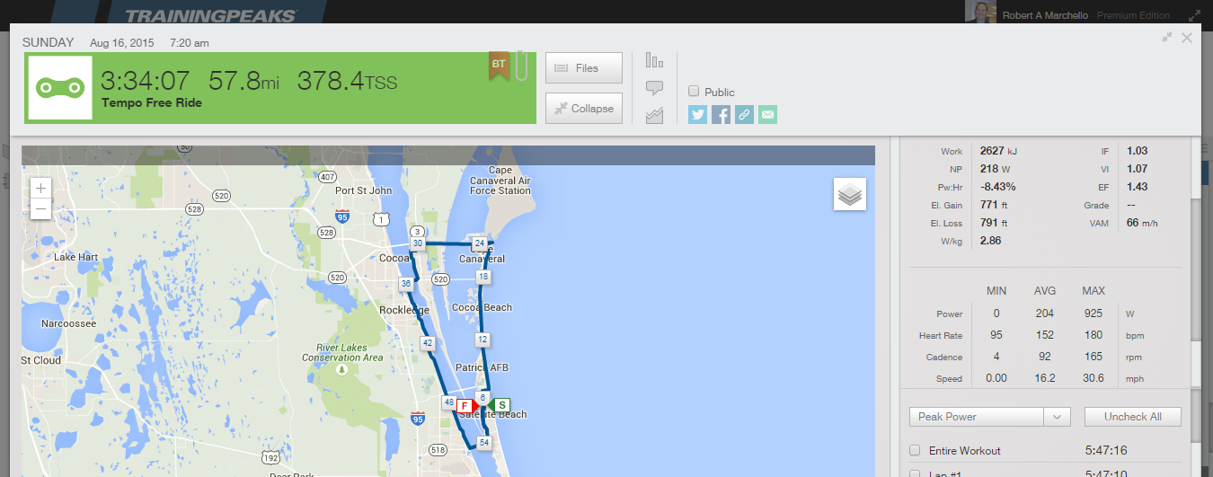 This ride was ALL HEADWIND (W14) and at times definitely felt some stronger gust. The speed wasn’t there but the power was nice and bit of elevation gain for FL…in addition to wind and soaking wet feet!